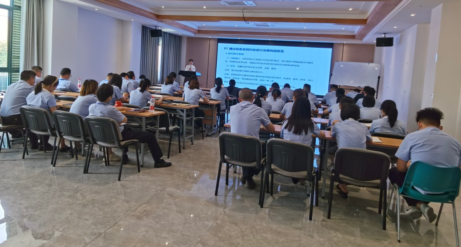 公司長(zhǎng)期注重對(duì)企業(yè)員工的培訓(xùn),編制年度培訓(xùn)計(jì)劃,涉及公司、部門(mén)/車間、科室班組三級(jí)體系,每年大大小小的培訓(xùn)有上百場(chǎng),并精確定位到各個(gè)部門(mén)。此次我們邀請(qǐng)到了天馳君泰杭州分所的曹晨程律師為大家?guī)?lái)一場(chǎng)以買賣合同為基礎(chǔ)的法律知識(shí)普及,讓業(yè)務(wù)部門(mén)員工學(xué)習(xí)如何規(guī)避在簽訂買賣合同的前中后期會(huì)遇到的法律風(fēng)險(xiǎn),如遇不可抗力情況應(yīng)如何處理等法律知識(shí),增強(qiáng)對(duì)買賣合同問(wèn)題的防范措施。