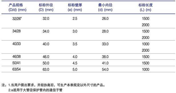 HDPE阻燃硅芯管規格尺寸