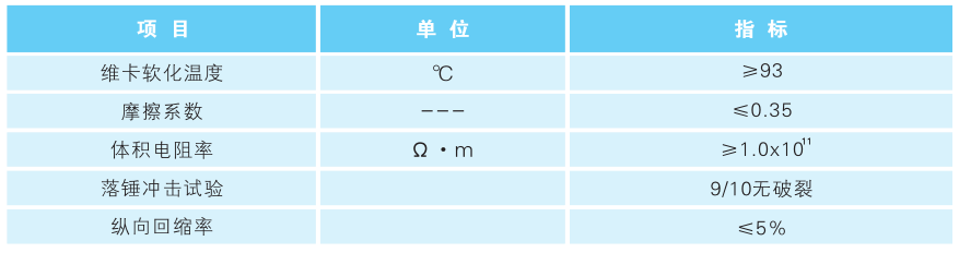 PVC-C電力管主要性能指標(biāo)