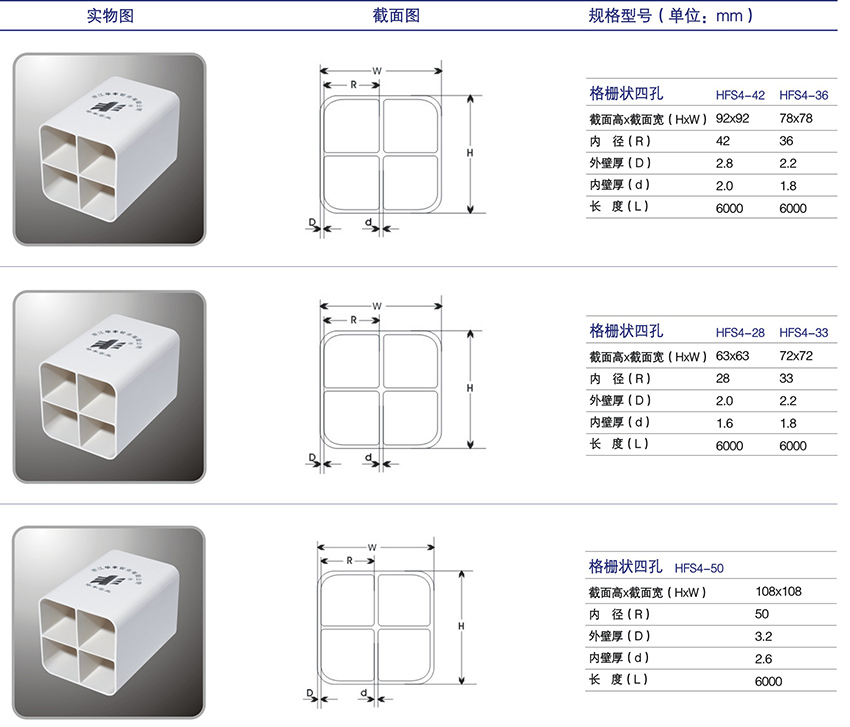 “豐”牌PVC四孔柵格管適用于通信光纜的穿導(dǎo)、隔離及保護(hù),廣泛應(yīng)用于光纖通訊、有線電視、多媒體傳輸?shù)裙こ獭?/span>